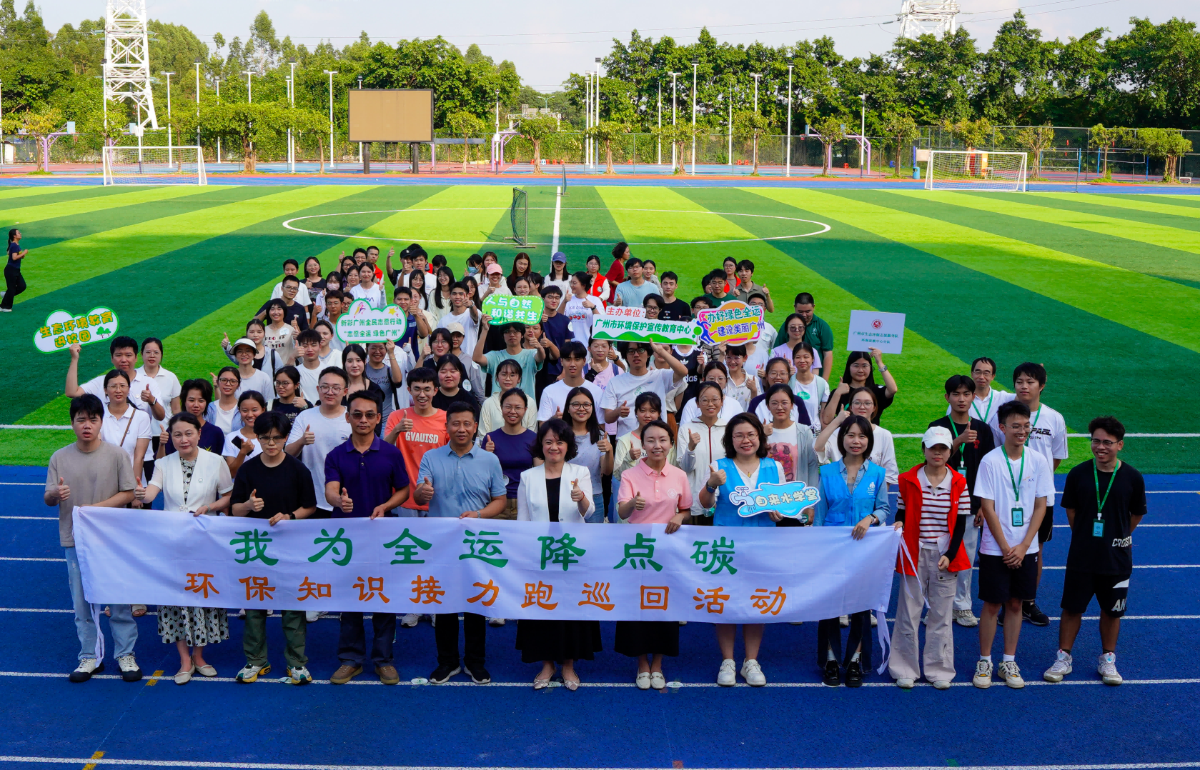 十月的广州,骄阳铄金。而在华南农业大学启林南运动场,另一份由青春点燃的热浪更为炙热——10月11日下午,一场以“我为全运降点碳”为主题的环保知识接力跑热烈举行。年轻学子们在跑道上挥洒汗水,在环保知识的接力中传递责任,将这方绿意盎然的赛场,化为一堂生动的“行走的生态文明大思政课”。这是青春与绿色的交响,是以第十五届全运会和残特奥会为契机,响应“我为全运降点碳”倡议,在奔跑中探索环境健康管理试点、描绘美丽中国城市样板的动人一幕。