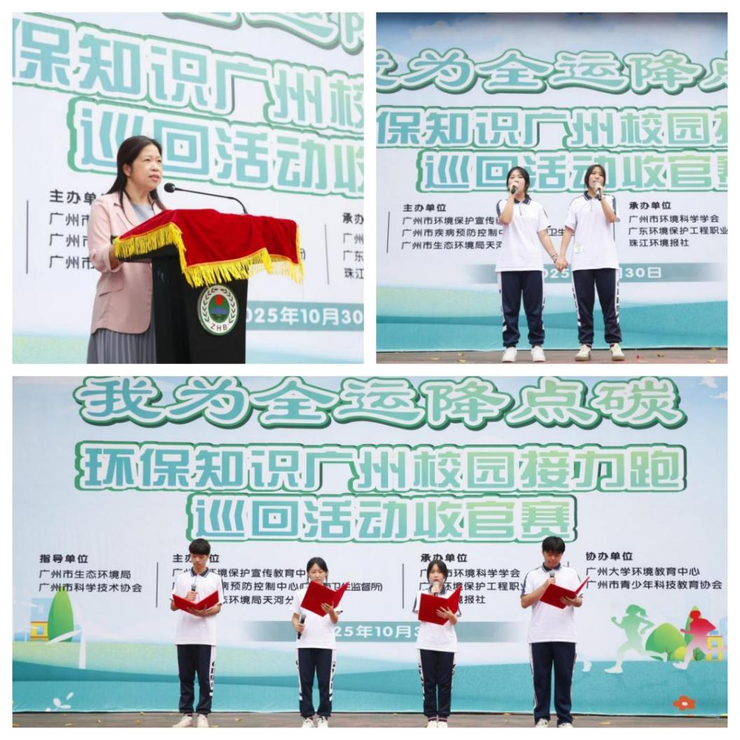 随着一声清脆的鸣枪响彻校园,历时数月的“我为全运降点碳”环保知识广州校园接力跑巡回活动,于10月30日下午在广东环境保护工程职业学院圆满收官。活动在广州市生态环境局和广州市科学技术协会的指导下,由广州市环境保护宣传教育中心、广州市疾病预防控制中心(广州市卫生监督所)和广州市生态环境局天河分局联合主办,广州市环境科学学会、广东环境保护工程职业学院与珠江环境报社共同承办。