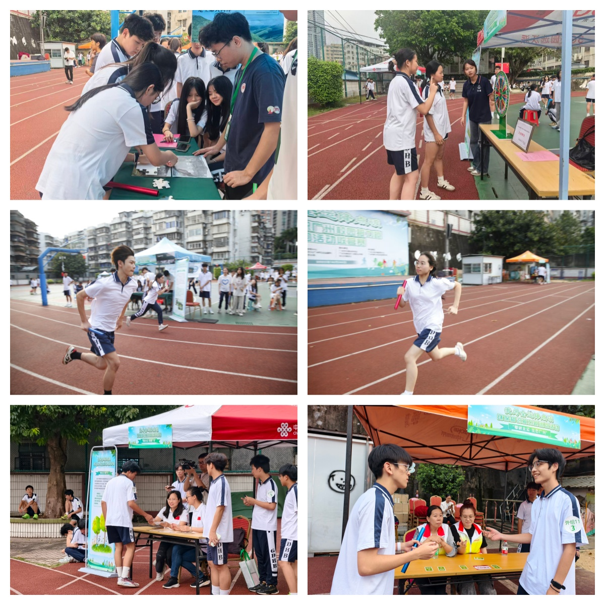 跑道上,选手们奋力奔跑;跑道旁,别开生面的环保知识展位成为活动的独特风景。内外跑道各设置了“零碳全运·美丽广州”“零碳全运·无废广州”“零碳全运·健康广州”“零碳全运·生态广州”4个生动有趣、通俗易懂的互动展位,内容将环境教育与思政教育相融合,包含了生态文明理念知识、绿色低碳环保知识、美丽全运要点、建设美丽广州要点、环境健康管理概念等。参赛者需正确回答环保问题方可继续前行,这不仅是对参赛者体力的考验,更是对其环保知识储备的一次趣味检阅。与此同时,媒体采访区同步开放,学校安排的学生代表接受了媒体访问,分享了参与活动的兴奋与收获,进一步扩大了活动的影响力。