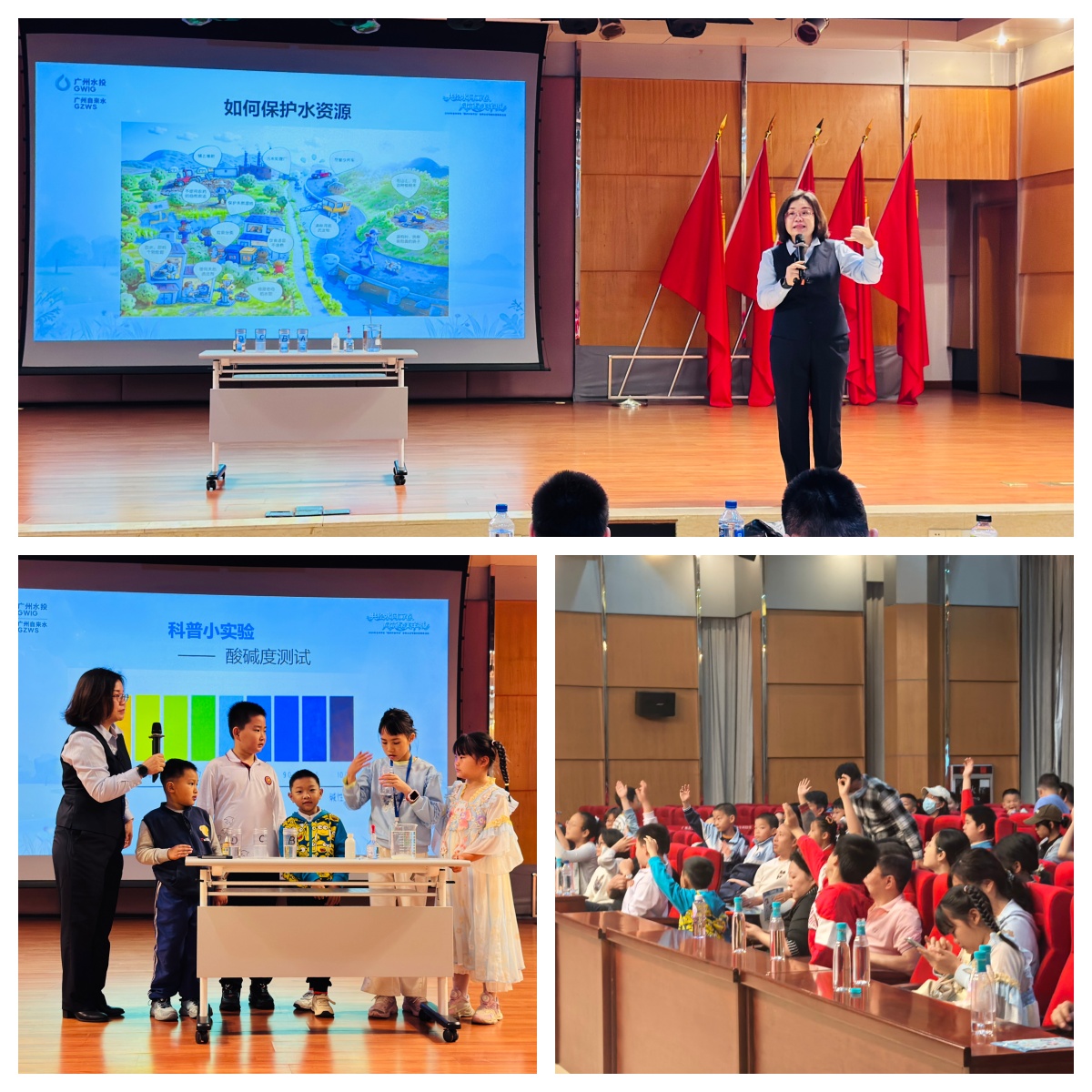毛老师生动地讲述了经过120余年,广州自来水用一滴水的旅程,写就了半部羊城民生史。至今广州已建成“四源共济、八厂互补”的优质水源新格局,讲座通过一个个鲜活的案例,引导家长和孩子们理解爱水、节水、护水在构建人与自然和谐共生现代化中的重要意义。