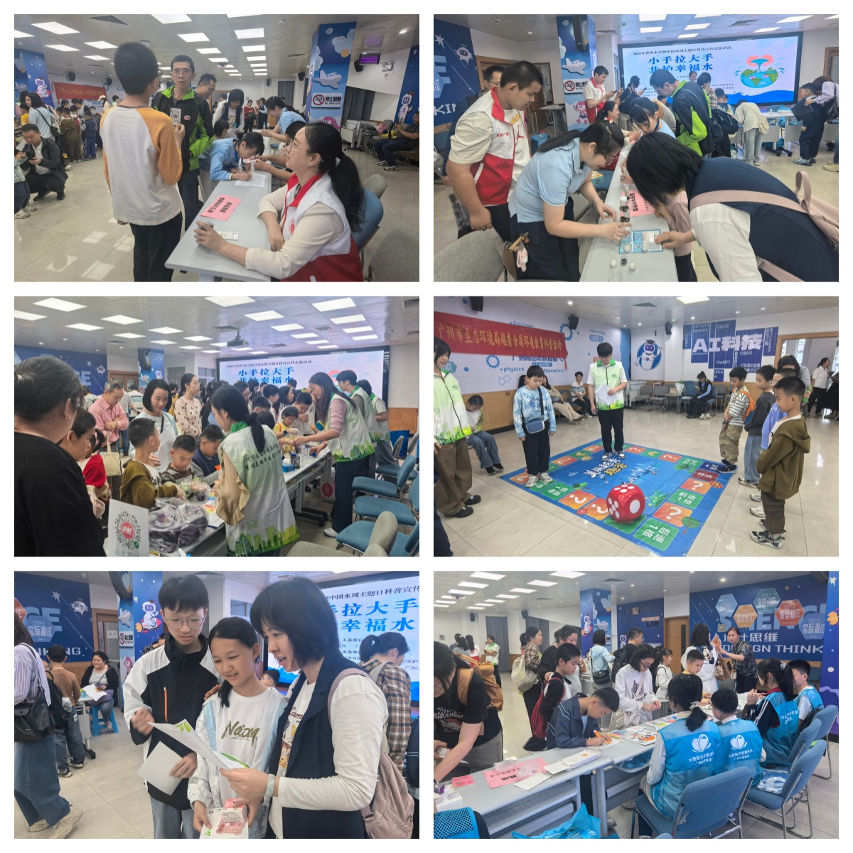 讲座结束后,丰富多彩的互动实践环节将活动推向了高潮。在广州青少年科技馆的科学空间活动区域,精心设置的八个主题鲜明的互动体验摊位,将水利知识与生态环保理念深度融合,构建起一座沉浸式的“水生态微课堂”。