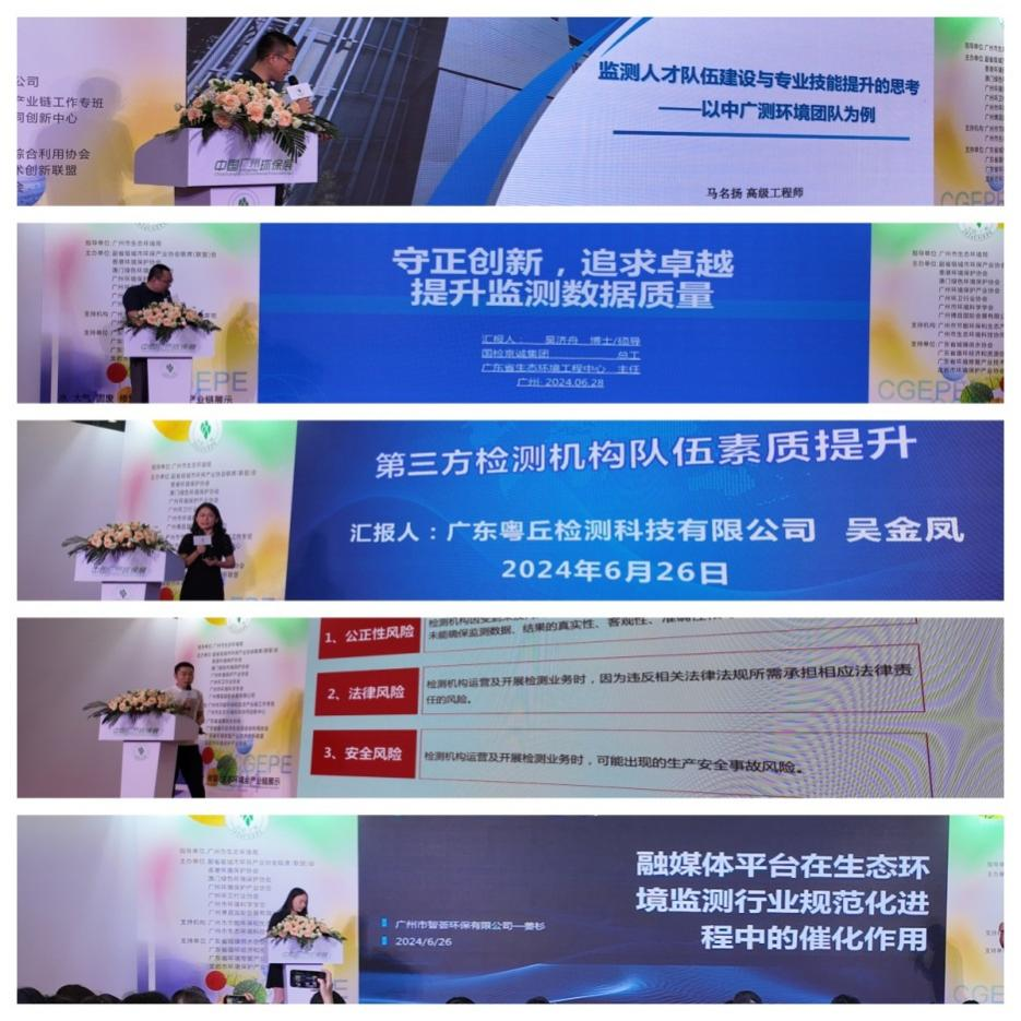 紧接着,来自中国广州分析测试中心、国检测试控股集团京诚检测有限公司、广东粤丘检测科技有限公司、广东贝源检测技术有限公司以及广州市智荟环保有限公司等五家检测机构和环保企业,围绕行业规范、技术创新、人才培养和管理能力等关键议题进行了发言。他们的发言内容包括了对实际工作中的常见问题分析,为环境检测行业的持续发展提供了宝贵的启示。